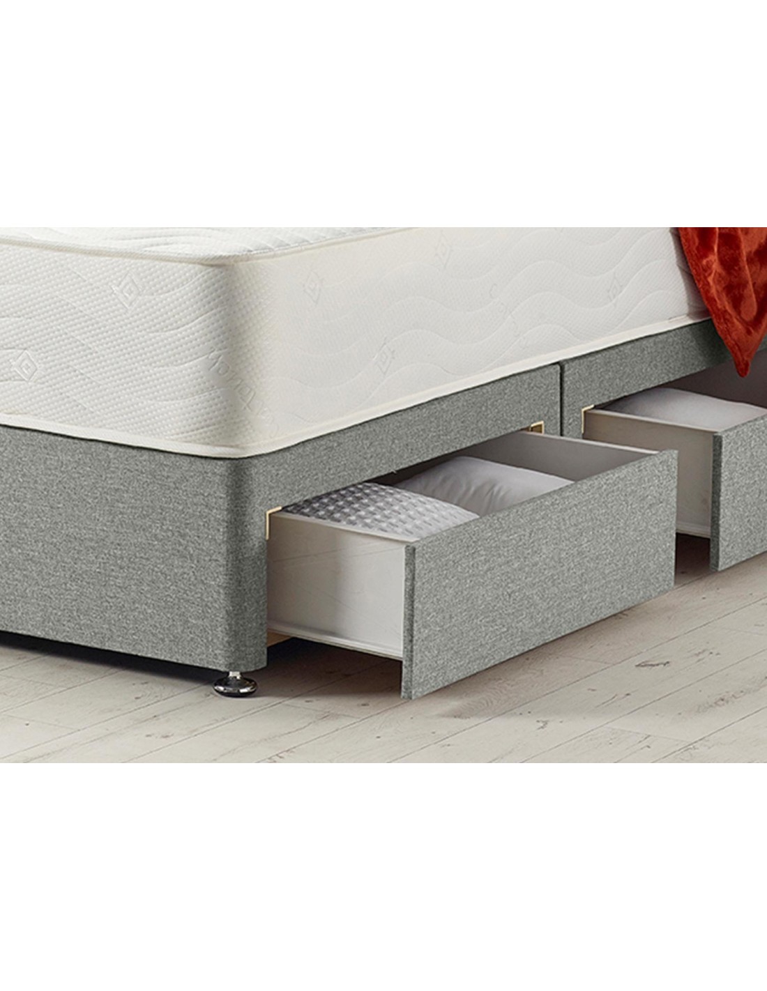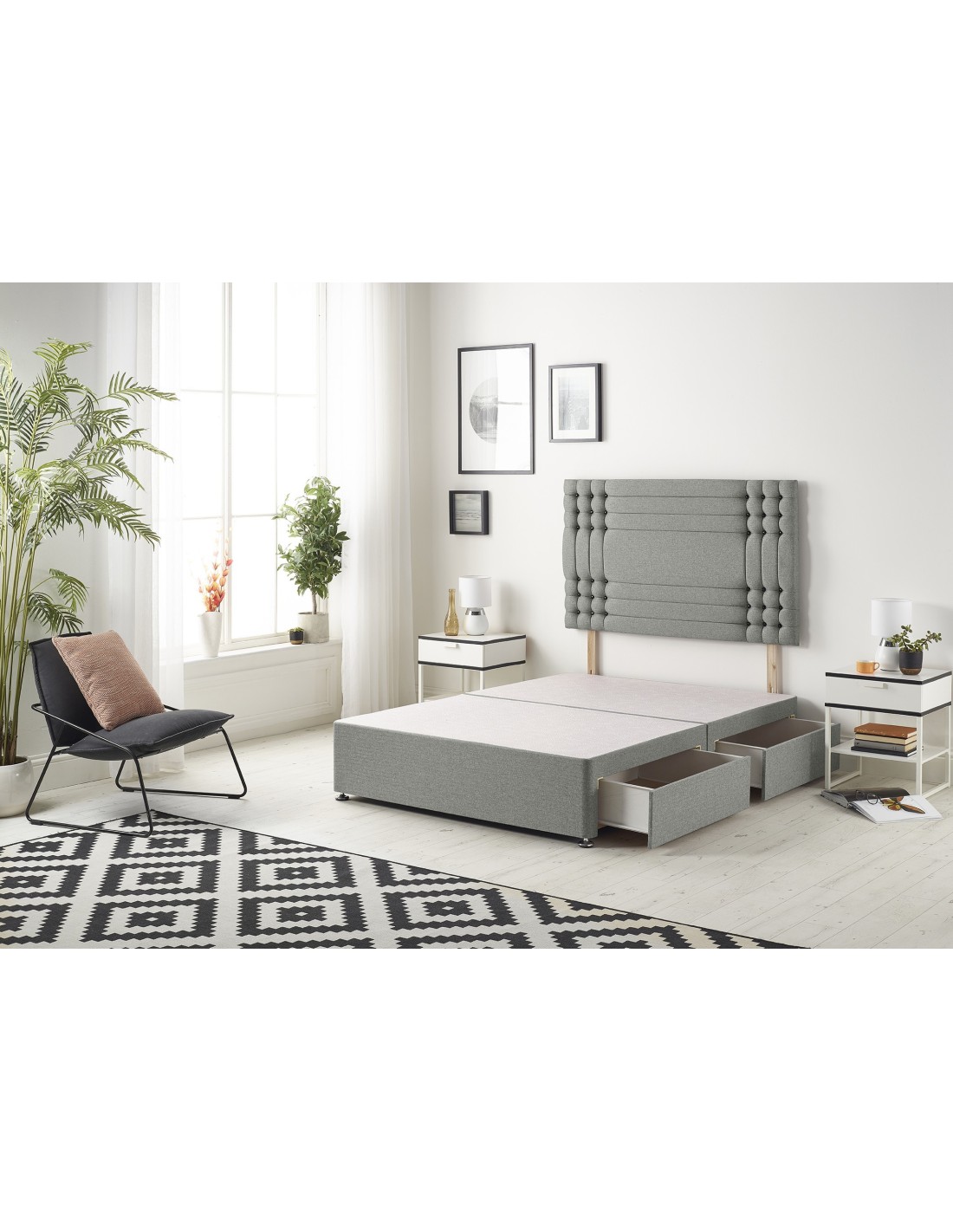 The Flexby Divan is one of the most stylish upholstery designs in our collection. The Flexby’s detailed headboard is designed with side paneled upholstered sections and horizontal sections throughout the centre. As well as its sleek handmade design, the Flexby Divan has practical, secret storage solutions for siding away seasonal items with its side or foot end drawer options, perfect for general clutter, to create a clear and cohesive living space.