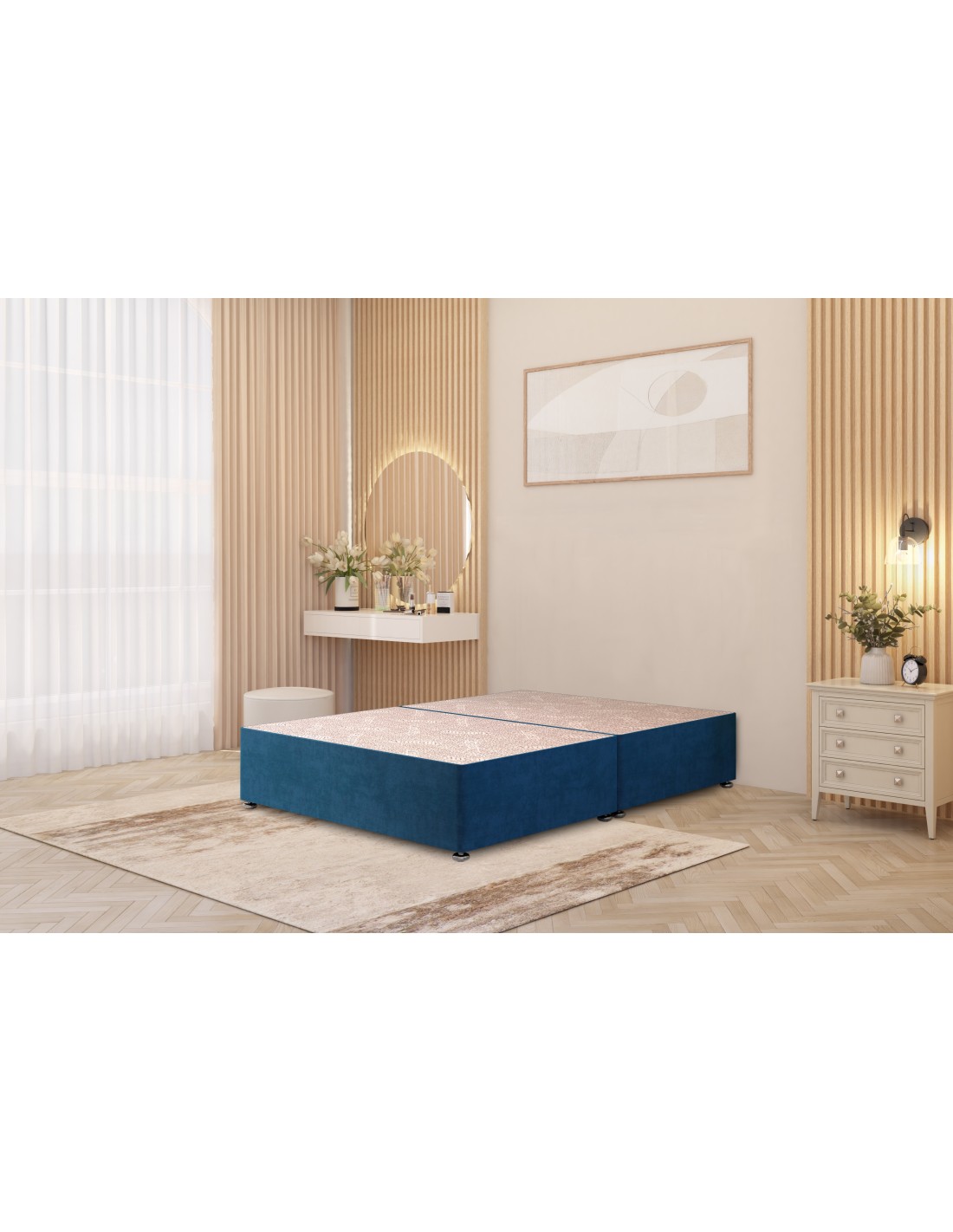 This divan set comes with a memory foam mattress and headboard. The base has no drawers. Upholstered 32" headboard can be adjusted in height using the struts. The solid platform top of the divan contributes to a better surface for your mattress to ensure the best nights sleep. The mattress will relieve pressure and take away your aches and pains. Chrome glides finish this bed and give a final elegant touch to the bed.
