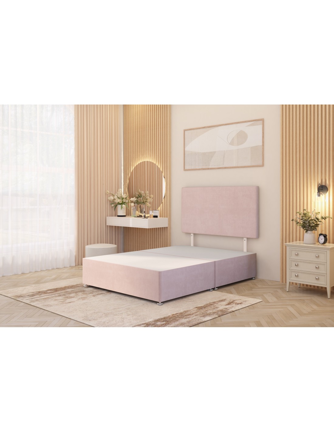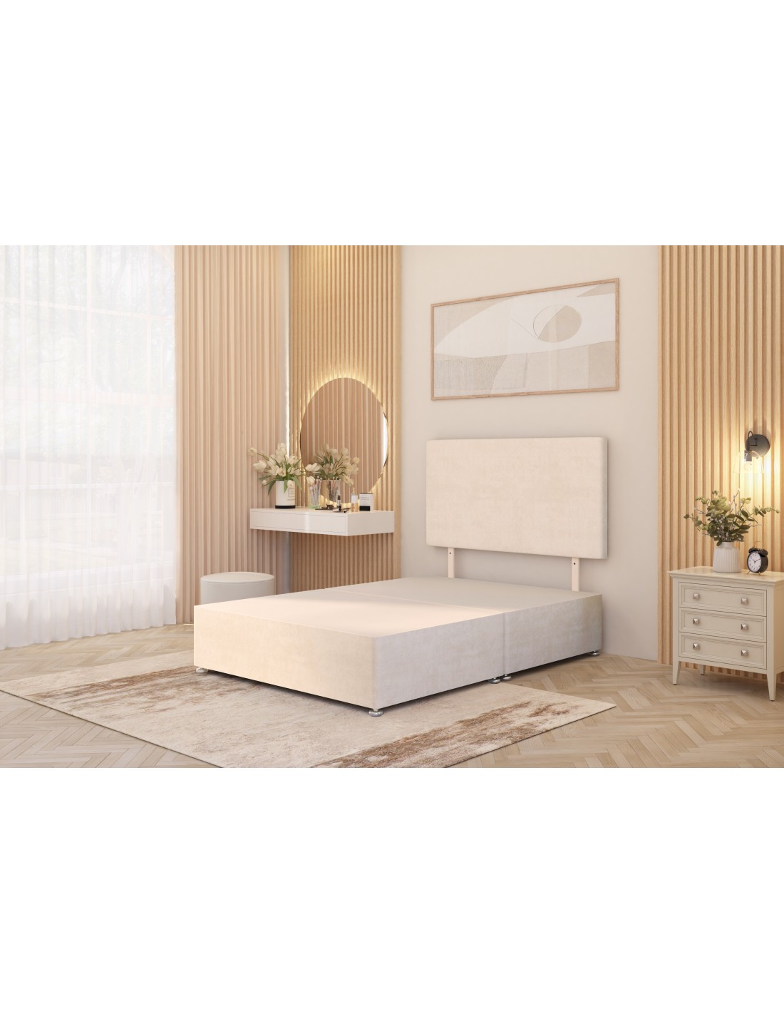 Divan base with headboard 2 drawers, plush velvet fabric