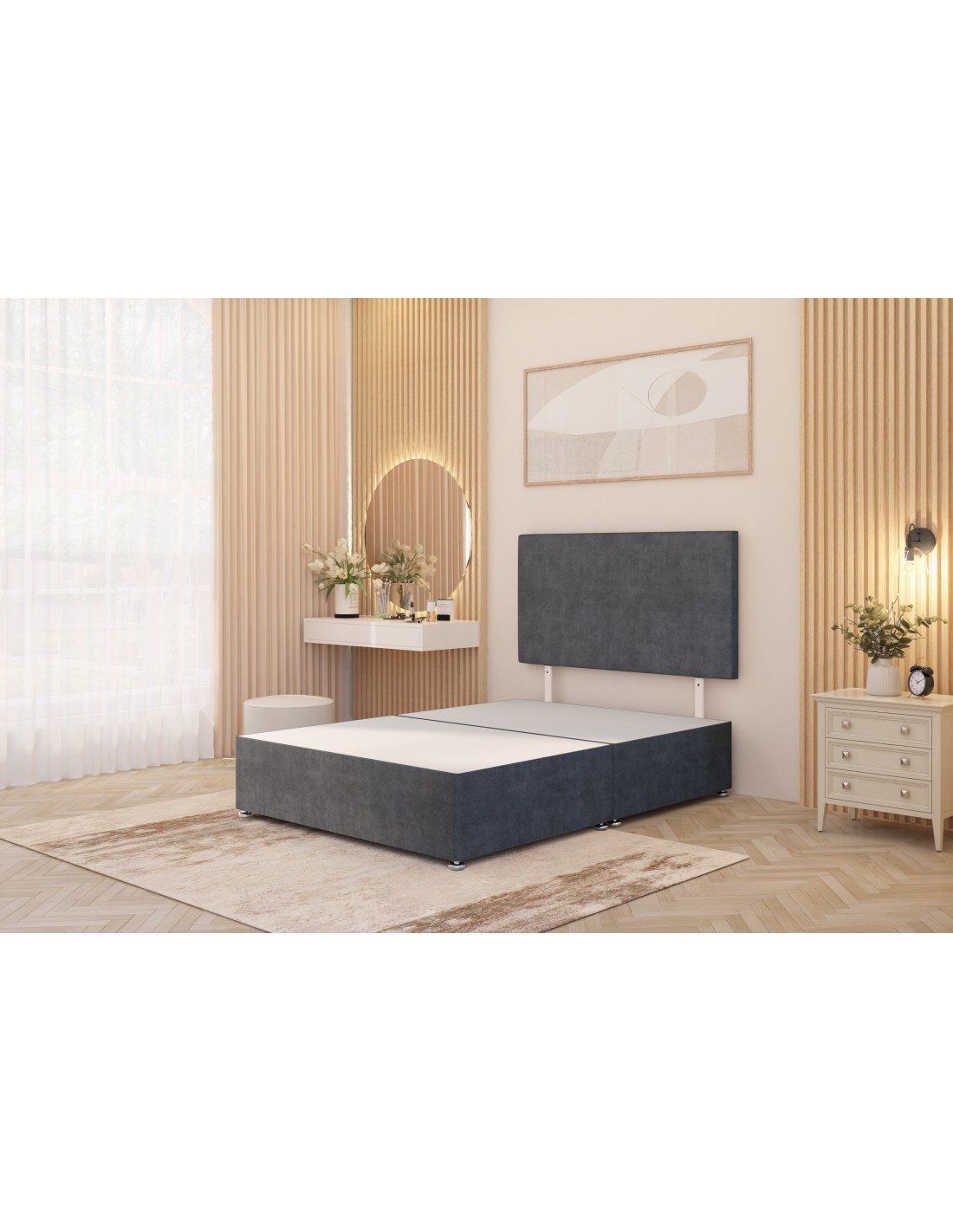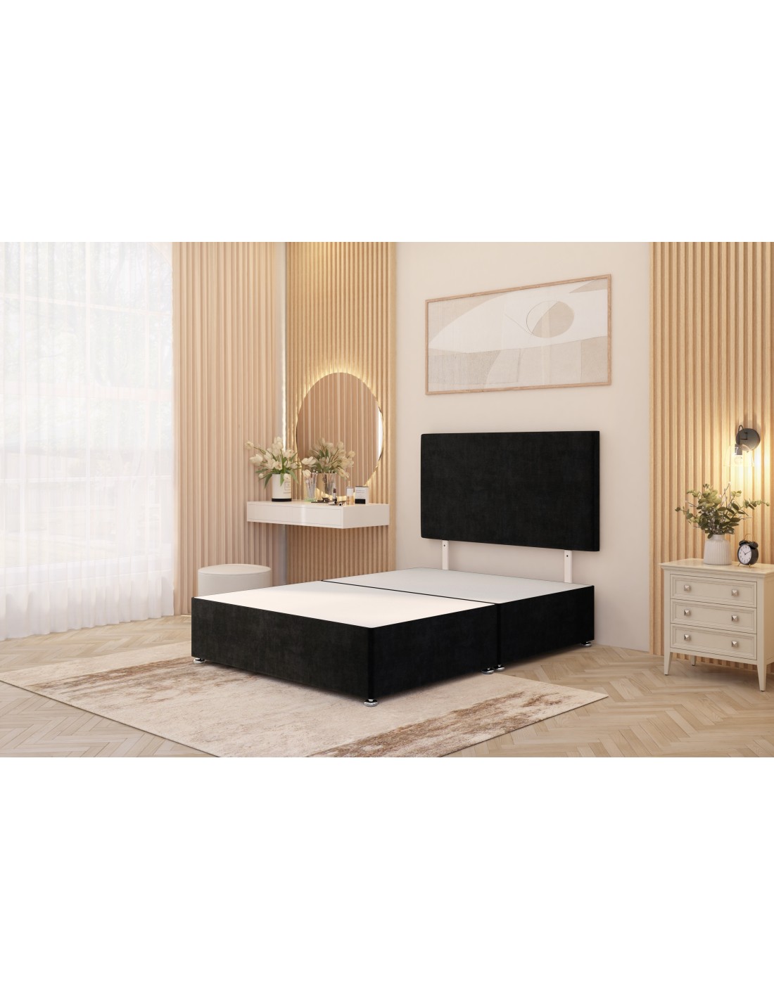 Divan base with headboard 4 drawers, plush velvet fabric