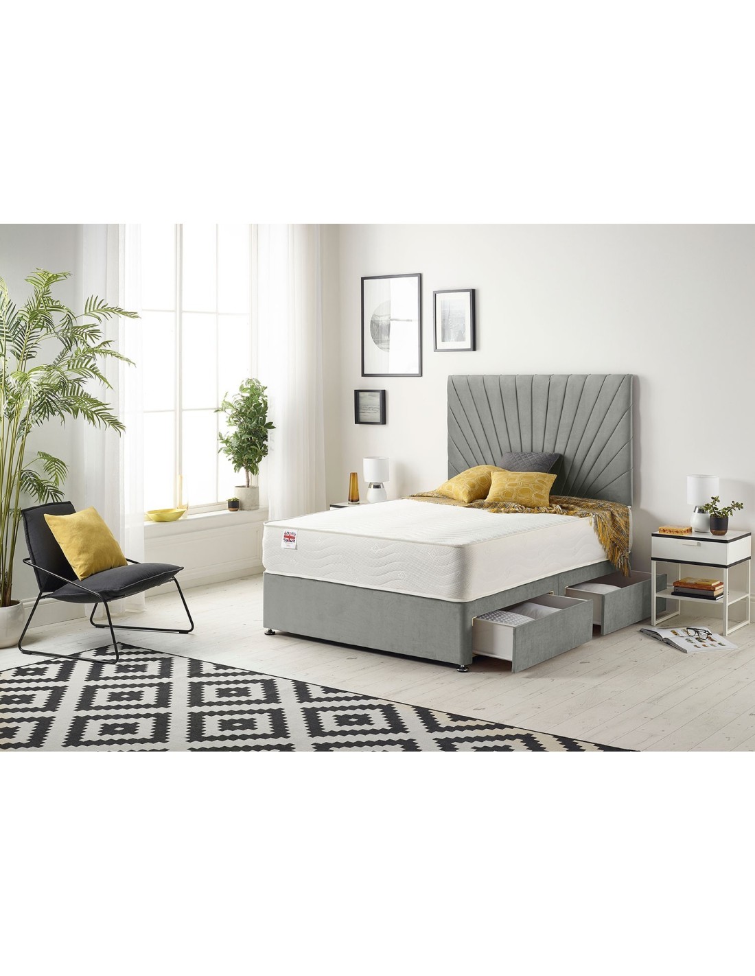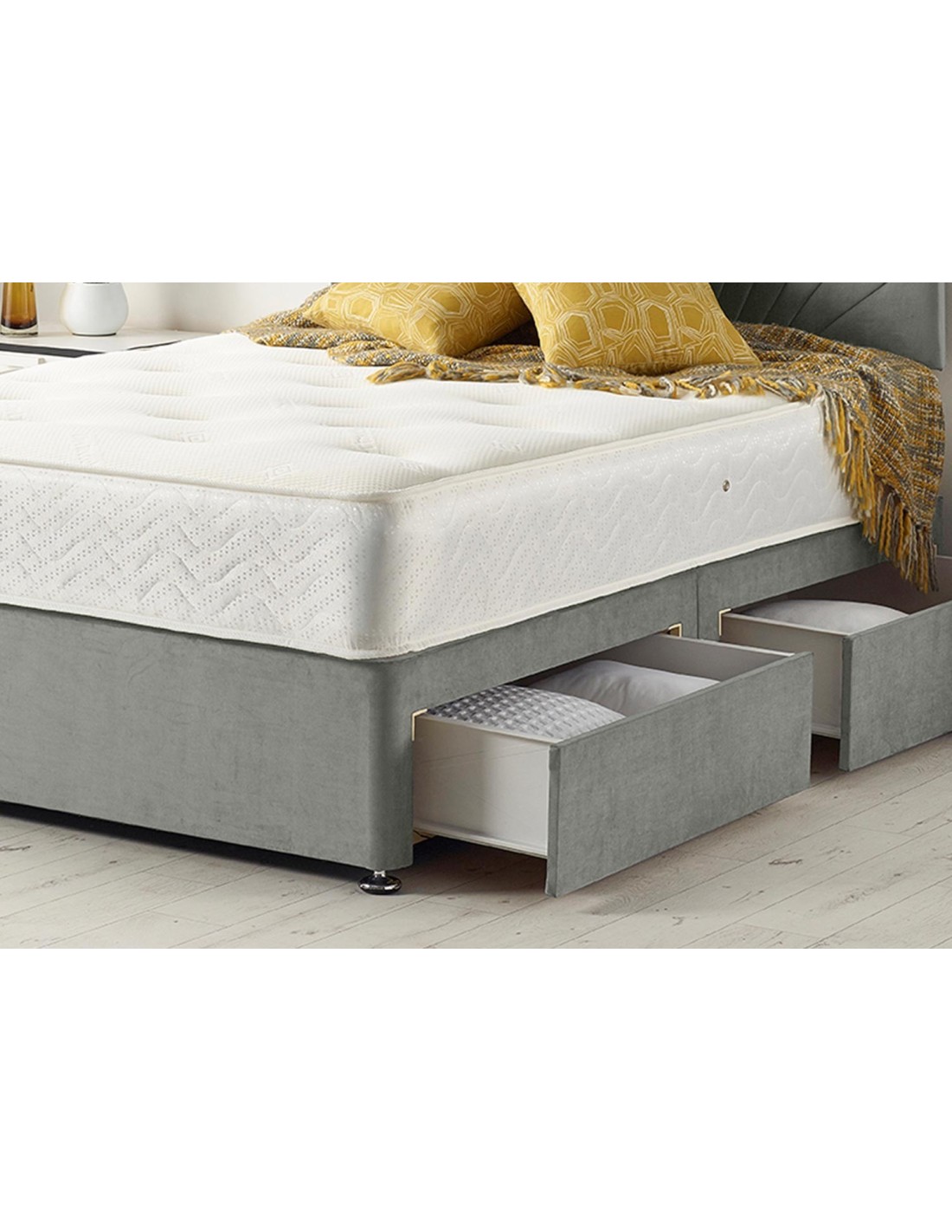 The Platinum Divan is one of a kind here at Next Divan and is made to offer its unique beauty as well as storage to suit your needs. The upholstery style of the Platinum Divan represents that of a rising sun and is sure to make your interior stand out in the crowd, with its boho look and feel. You can choose from either side opening or foot end opening drawers, to suit your room layout for easy siding.